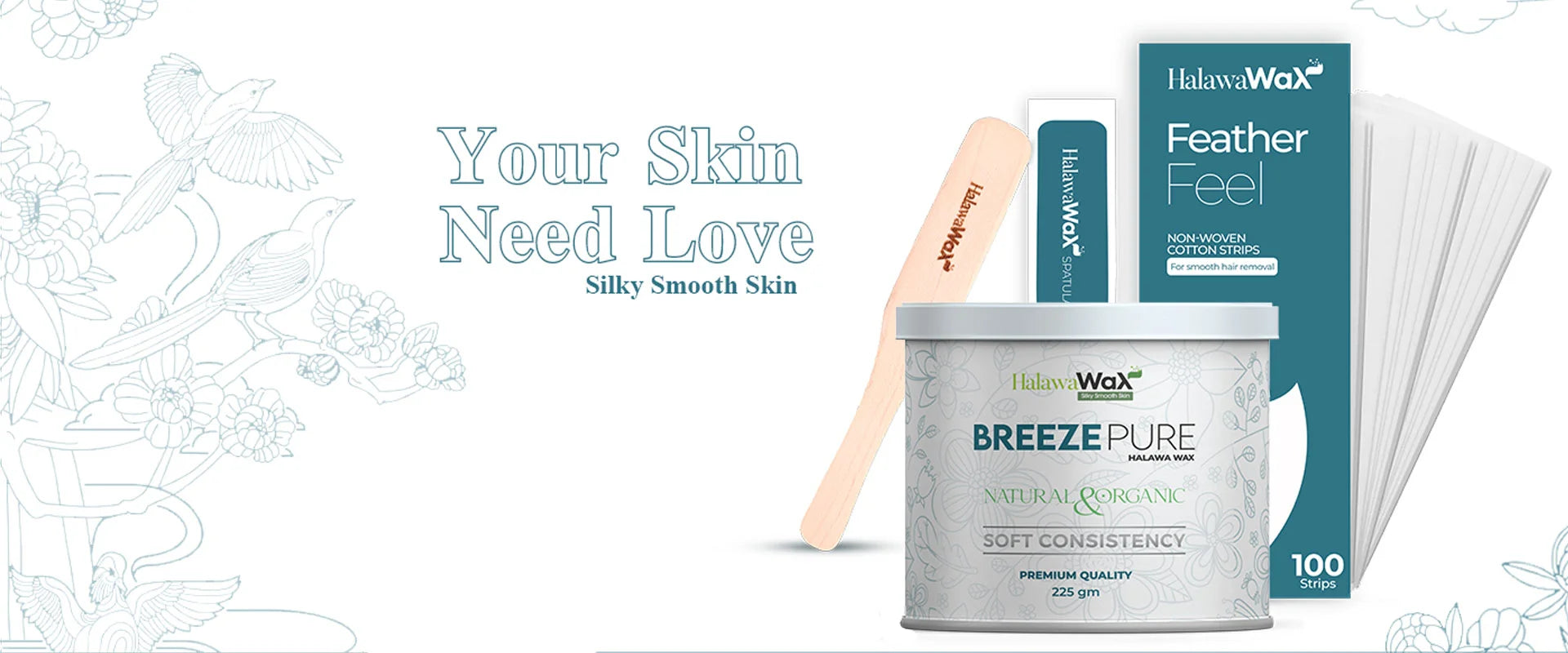 Breeze Pure Halawa Wax Pack of 2 + Free 2 Spatula & 2 Strip packs (100 in each)